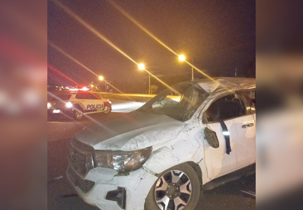 Segundo a polícia, durante a fuga o motorista da caminhonete perdeu o controle e o veículo capotou. Os ocupantes fugiram para uma região de mata.