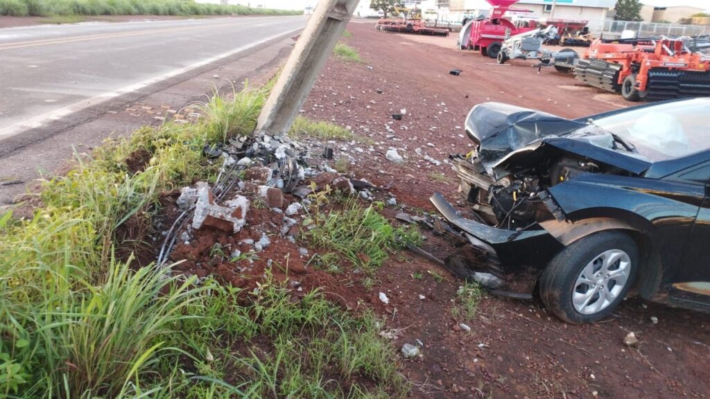 Motorista perde controle de carro e derruba três postes de energia